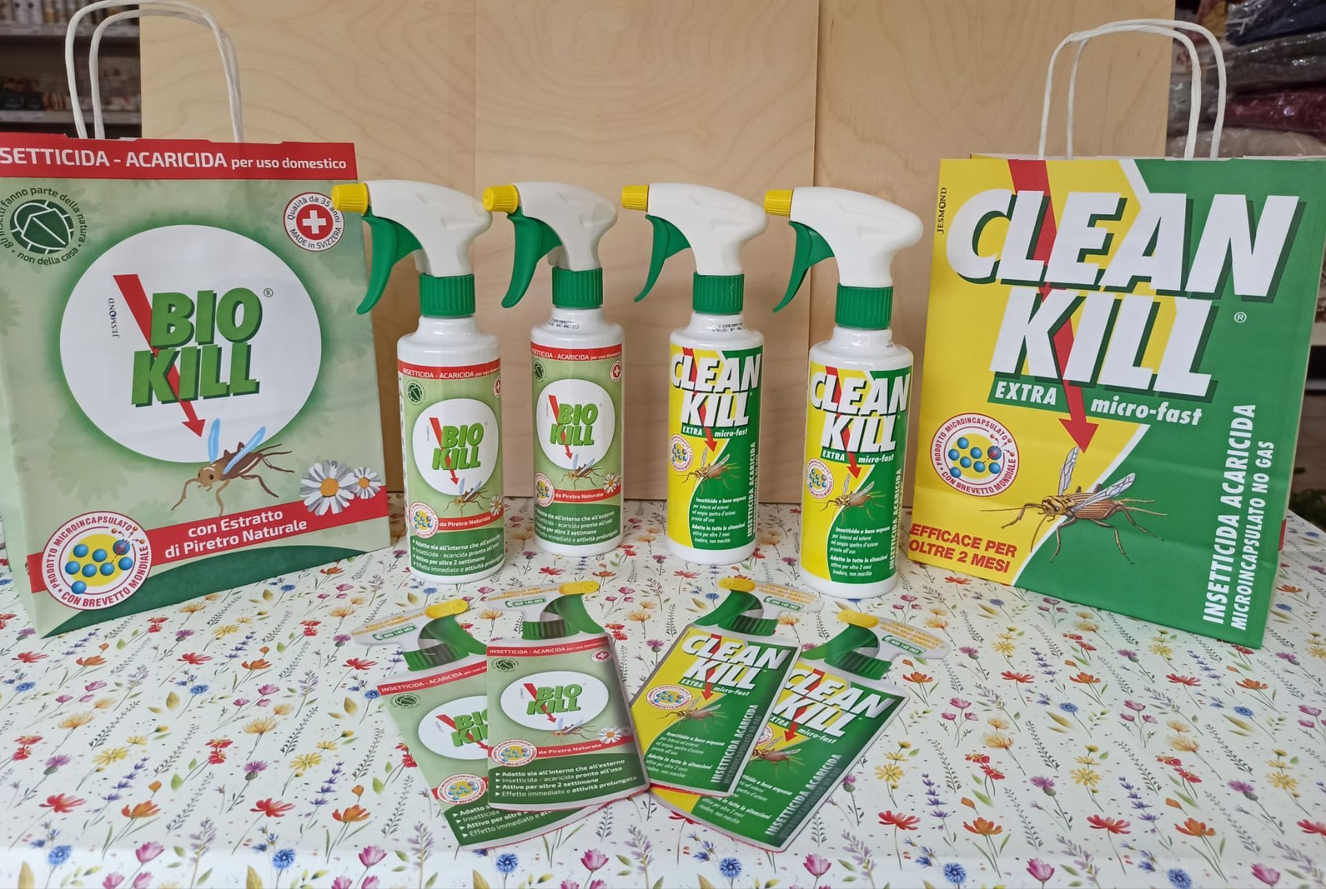Bio Kill e Clean Kill sono insetticidi acaricidi microincapsulati no gas. Agiscono contro tutti gli insetti indesiderati all'interno e all' esterno dei luoghi abitativi.